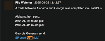 @cbj-blaze Louisiana Blaze are on the clock. Pick 10 in Round 7 due at 2025-11-14 03:18 CST